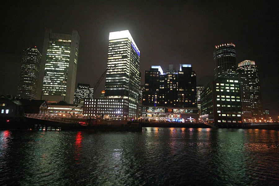 down atlantic avenue to india street to harborwalk - east boston across the harbor & logan airport