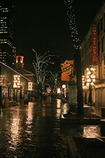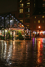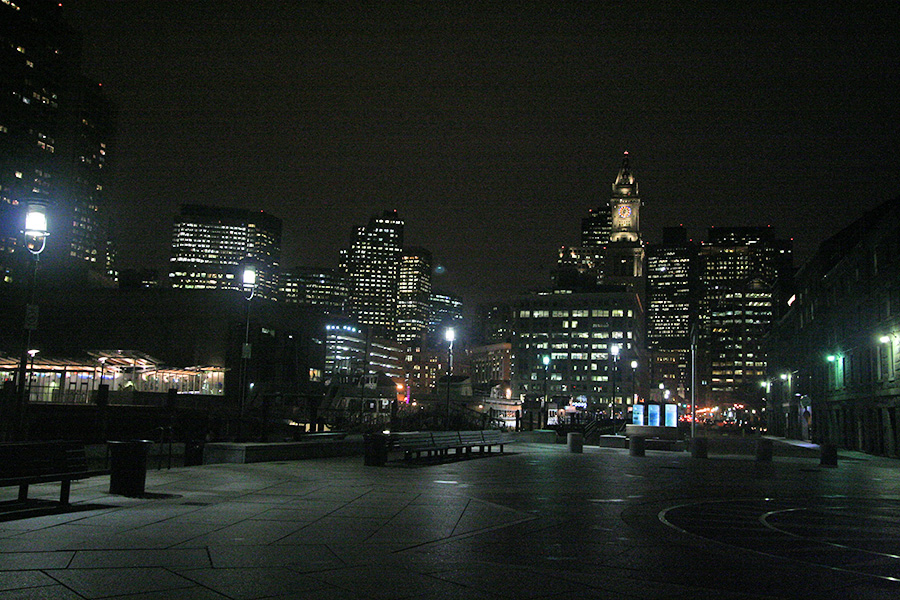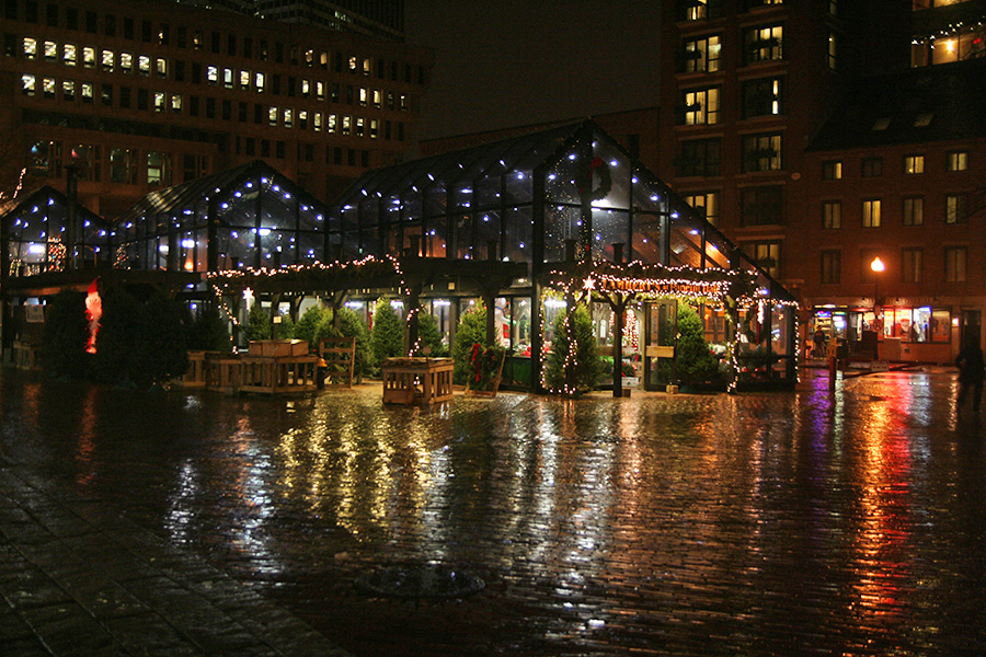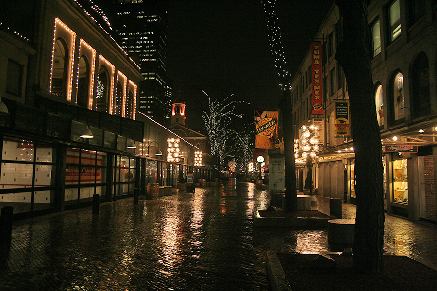 quincy market - least amount of people i've ever seen - only 7:00 a few eating places already closed - started to rain a little bit at that point - not too many shoppers, mostly teenagers