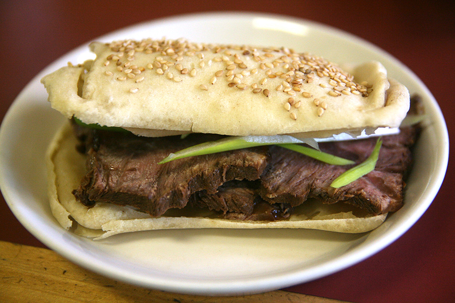 i made my way across somerville via a different route, up the hills of school street. that turned out to be a terrible mistake and i probably added an additional 10 minutes to my travel time. next time: broadway-cedar. at the cafe i had a shao-bing sandwich - actually my first meal of the day (if you don't count a cup of egg nog) even though it was already late afternoon.