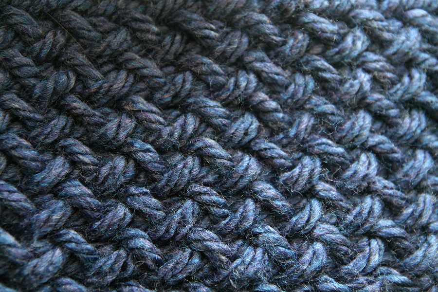 be duplicated with needles: it had a cross-stitch pattern on one side and a ribbing pattern on the other. the 2-sided patterns meant double the thickness but i used a soft acrylic yarn and probably made the scarf that much warmer. using a loom also creates very uniform yarn tension, something that's hard to achieve with knitting needles. because of the double thickness, the yarn was used up pretty quickly, and my mother was thinking about unraveling the whole thing because once complete it'd only be a short scarf at best.