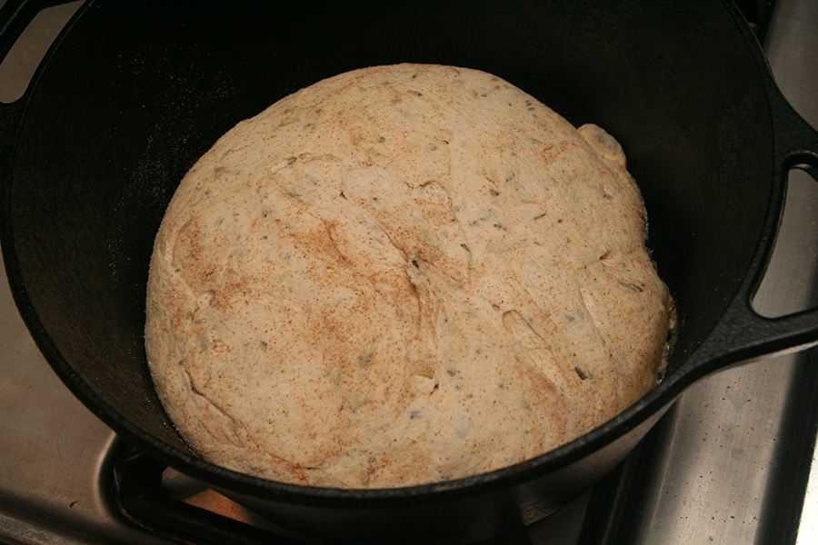 while the bread was in the oven i couldn't really smell the rosemary nor the garlic but the house had this savory aroma similar to baking a thanksgiving turkey. it was a nice smell on this grey friday. although the storm had passed by early this morning (there was a potential for up to an inch of snow but i saw none of that) the sun stayed hidden until late afternoon. i didn't bother going out anyway because it was cold (30's).