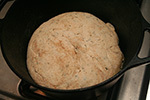 shape-wise, the bread came out fine: soft and puffy on the inside, crispy crust on the outside. this is proof i can made good bread in my house during the winter, despite the cold weather. for the fermentation i did leave the dough on top of the refrigerator, and for the 2-hour rise i put the dough on a rack over the hot air vent in the kitchen and then later near the hot air exhaust on the stove when i began to preheat the oven. i'm still not getting the rise that i want (supposedly it should be at least 2x the original size, but i didn't see it), but the bread still comes out fine.