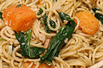 i didn't have lunch yet so i ate some leftover hot pot scraps with some udon noodles. later i had some baked shells and a cup of keurig-brewed chai latte.
