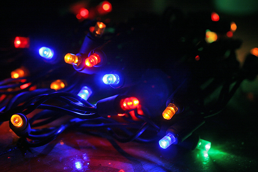 on a whim, i decided to try the nearby dollar store to see if they had any holiday lights on sale. at first i thought i arrived too late because a lot of shelves were bare in anticipation of new stock. then i found all the leftover christmas stuff bunched together in one area. they had many boxes of old-fashion bulb christmas lights but i wasn't interested in those; what i wanted were energy-conserving LED lights. i was about to give up when i found a few boxes: one assorted colors, one plain white, one blue. normally they sold for $6 a box but now they were discounted 50%. i ended up buying the box of assorted colors and the blue ones.