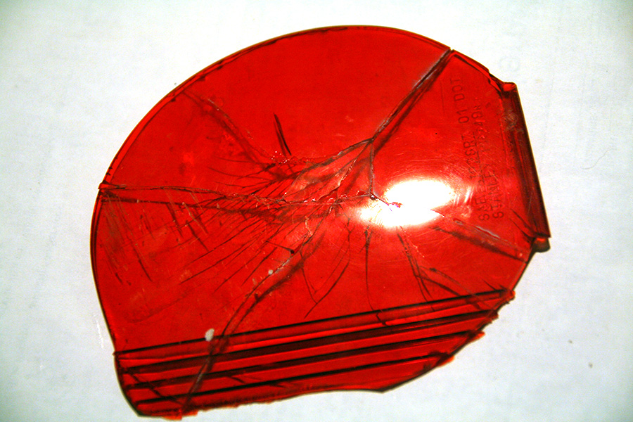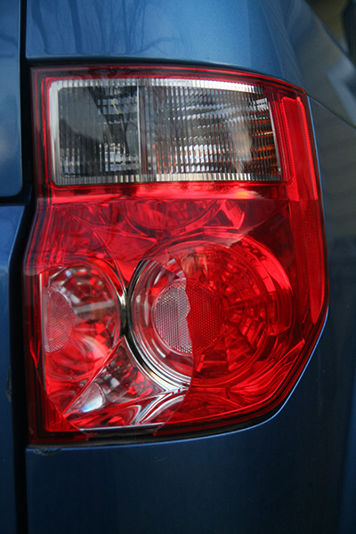 a motorcycle is not designed to rest on its side: mirrors shatter, lights break, bike parts get dented and scratched. i quickly uprighted my bike to inspect the damage. it fell onto its right side into the grassy area of the curb. other than some dirt and a slight scratch on the handlebar end, the motorcycle escaped relatively unscathed. but what about all the red plastic bits on the ground? that turned out to be from the cracked covering of the rear passenger tail light of the car. it's ironic that the car suffered more damage than my motorcycle. my mother and sister went shopping anyway, but my mother was freaking out until i called her to let her know everything was alright since it'd cost just $60 to buy a replacement tail light1 (an additional $13 for shipping, scheduled to arrive next week) and it'd be something we'd be able to repair at home.