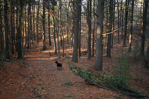 today the whole family took the dog to "winchester fells" - which is what my sister likes to call western middlesex fells. temperature was in the 40's, a sunny but windy day. since it was the observed new year's holiday (with new year's being on a weekend this year) there was a lot of cars parked outside the fells. fortunately the reservation is large enough that most of the time we were just by ourselves. unlike last time, i printed out some trail maps and both my father and i had GPSs so we wouldn't risk getting lost.