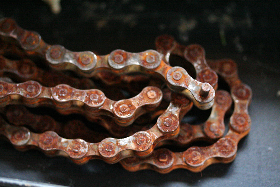 when i got to belmont my mother made me a bowl of mien geda for lunch. i brought my bike tools so my father could remove the rusty chain from the found bike frame. he tried to install the loose rear derailleur (shimano RD-M290 acera)