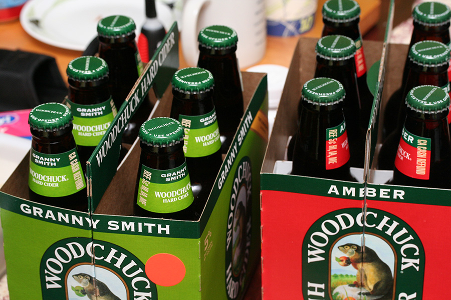 my parents didn't get back until almost 7:00. they brought with them a large container of sushi and several packages of hard cider. i tried angry orchard's apple ginger hard cider. despite the intriguing graphics on the carton, it was pretty bland, more beer than cider, and not very sweet. later i had a woodchuck amber, which is the hard cider i compare all others to. i didn't get a chance to sample the granny smith, maybe tomorrow.