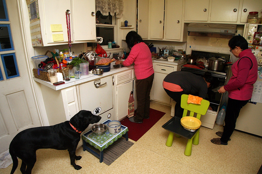 with people scheduled to arrive around 5:00, my mother and sister were still in the process of cleaning up the house. once they left for the cafe to pick up the food, i put away some final items in the small bedroom.