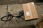 my roommate was gone this morning by the time i woke up, off to her MIT orientation meeting. i got my bike from the basement and went to the supermarket to get some milk. when i got back i strapped the latest norwegian shipment to my bike - the biggest box yet but not very heavy since it was just 2 child booster seats and a watch. i was actually a little worried that the post office might not ship it because it was too big but i didn't have any problems.