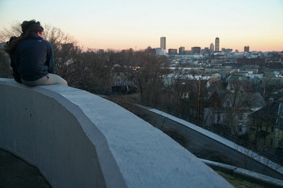 along the way we spotted a red-tailed hawk, some mourning doves, and a few glass insulators up on utility poles. the mattress was supposed to be on columbus avenue but when we arrived it was already gone. since we were already there, i took my roommate to the summit of prospect hill to get a nice view of boston/somerville/cambridge.