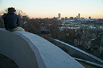 prospect hill was surprisingly crowded. as we ascended the steps to the tower, we saw two suspicious-looking cyclists hanging out in the shadows. on the walls sat an embracing couple. down below on the grassy slope was a girl in headphones sitting by herself waiting for the sun to set. and a chinese man with a small camera kept running around the hill taking photos. "did you smell that when we came up?" i asked my roommate. "those 2 bikers were smoking pot," i told her.