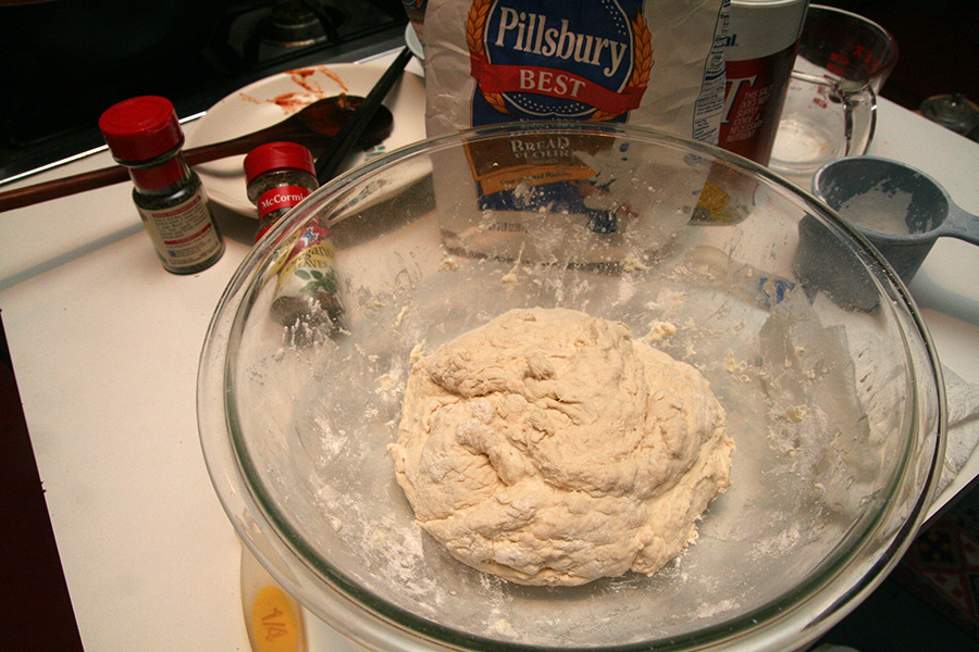 for dinner i made some pasta with vodka prosciutto sauce (gave me a chance to take a few swigs from the bottle). too bad my roommate wasn't home yet otherwise i would've shared with her. i also started some no-knead bread, for no reason other than to show off. my roommate didn't come home until after 9:00.