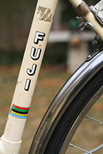 there's nothing on the bike that could date it. there were numerous fuji labels and logo; my favorite is the original saddle withe "FUJI" stamped in the back. i also like that it seems to be actually made in japan with japanese parts.