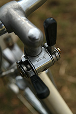 inspecting the cables revealed the reason for the gearing problems: at least one of the cables (for the front gear) was frayed to the point where it was about to snap in half. the bike seller told me they also did some cabling work when they first got the bike but that doesn't seem to be the case (unless the cables had deteriorated so much since it's last tune-up). i actually don't mind the stem shifters now; when i first saw them on an old bike i thought they were so retro and strange, but since then i've seen them a lot, especially on these (old) cheap bikes. i don't shift all that much anyway (maybe a single gear bike in my future).