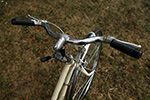 the weirdest thing on this fuji has got to be the handlebars. they look like the upturned handlebars of of kid's bike (because they're kind of small) but tilted forward. it makes for an unusual riding posture because i'm actually leaving forward a little bit, like i would on dropdown handlebars, but these aren't dropdowns. i've looked onto for other fuji sports with these same handlebars and i haven't seen any so they must've been put on later as a modification. what i really want are some northroad handlebars; if i can get a set for this bike, it'd be a comfier ride.
