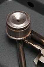 after dropping off some groceries at home, i switched to the fuji and went to the cafe, to drop off the efferdent as well as some rainbow goldfish crackers. i brought along a pair of stovetop burners that my father managed to clean with his industrial strength cleaner, but most of those dark stains were removed with a brillo stainless steel scouring pad. he told me the two others i had back home could be polished off with some steel wool.