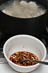 for dinner i boiled some frozen homemade chinese dumplings i had in my freezer.