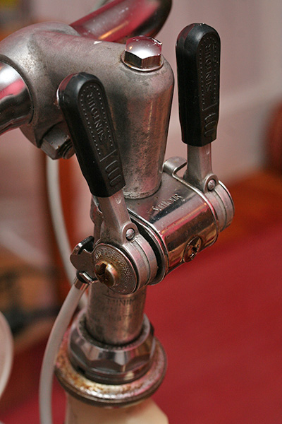 yearning to make the final adjustments on my bike, i realized i could simulate shifting by simply turning the bike upside down (and layering some newspaper to catch any stray grease specks). since the fuji is a 10 speed, the 2 gears in the front didn't need very much tweaking. the 5 gears in the back however required a little more work. i played around with the high (H) and low (L) screws so the derailleur wouldn't rub against the metal spoke guard in high gear nor would it derail the chain off the smallest sprocket in low gear. even then i was still running in the problem of the shift lever automatically springing back into the up position. that's when i realized the simple fix was just to tighten the screw below the shift lever. so actually, i didn't need to replace the rear cable after all (but good to do it anyway, for the practice). this is actually my first time replacing the cables on a bike with stem (friction) shifters, so it was a good learning experience. since they're not indexed, there's a lot less compatibility issues. still, given the choice, i prefer handlebar-mounted indexed shifters.