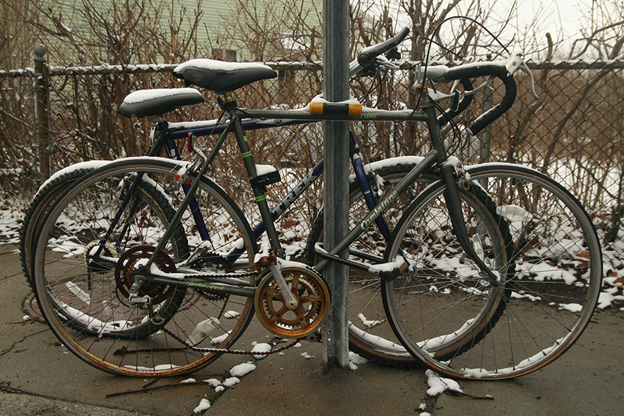 after clearing off what little bit of frozen snow was still left on the sidewalk, i walked to the local bike store to score some cable casing.