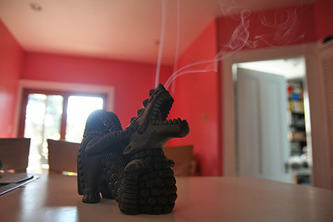 the smell of cooking oil was still strong inside the house. since the weather was so warm outside (officially boston hit 62°F today) i opened a few windows to aerate. i also burned incense in several rooms. after all that work, i could still smell the oil.
