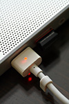 the best thing that can be said about the replacement charger is it works. sort of. it has the red/green leds like on an apple magsafe plug, but they don't always turn on, and when they do,