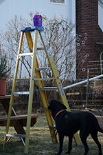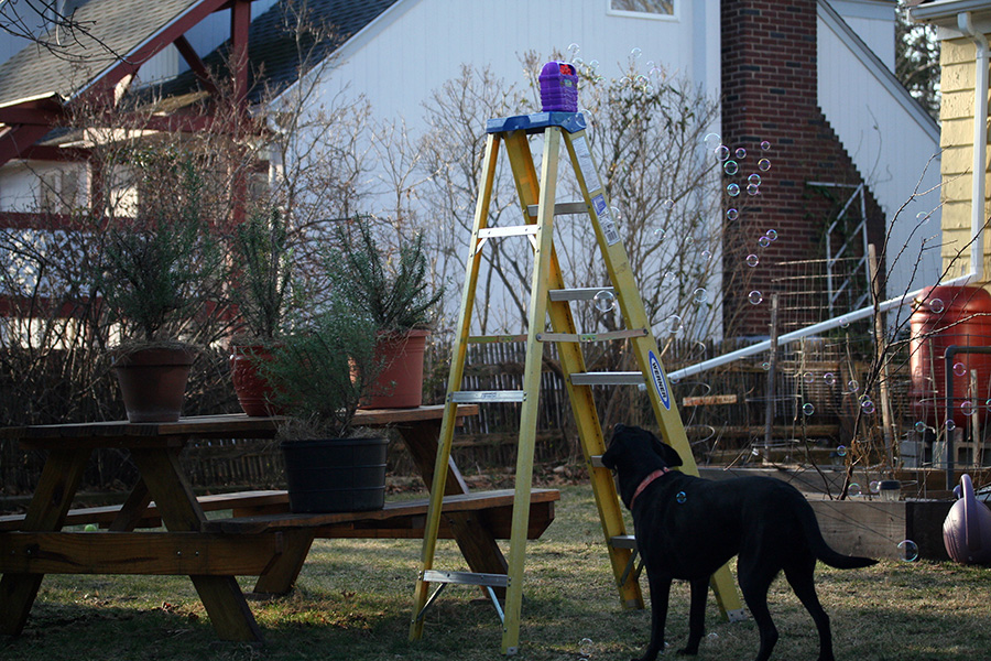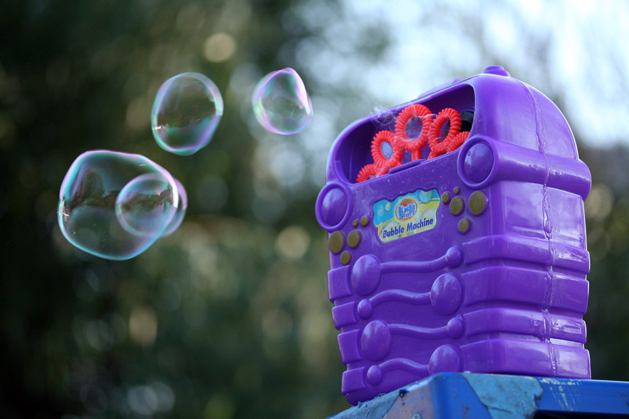 later in the afternoon i let hailey have some fun with the bubble machine. i'd never used it before and couldn't figure out where the bubble solution went, and accidentally poured some into the wrong hole (the blow hole). the machine then made some horrible sound and smelled like burning plastic, which at the time i thought was normal until my sister came home and told me otherwise.