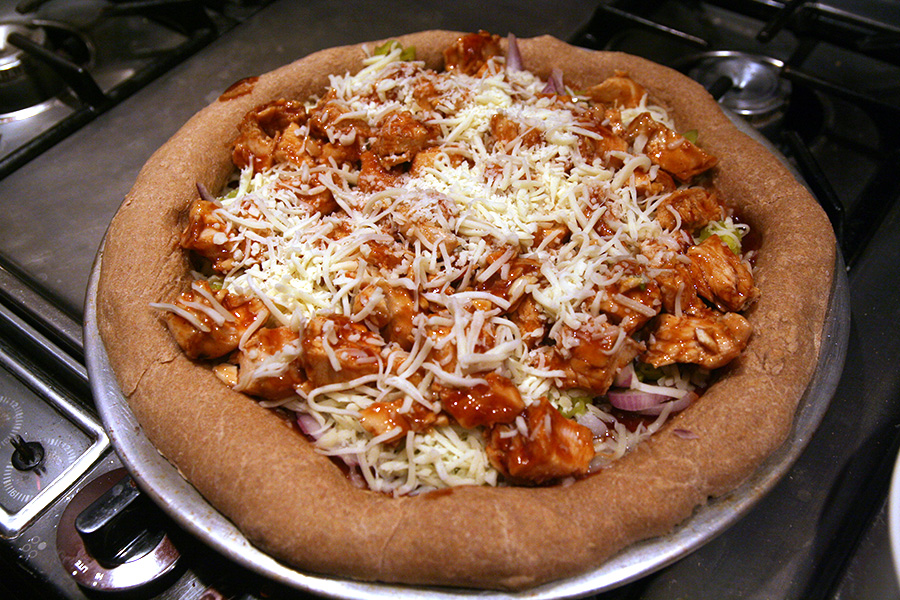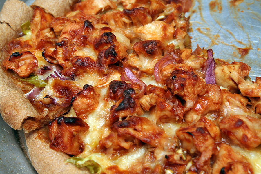 for dinner i made some barbecue chicken pizza. i asked my roommate if he wanted some, but he said no because he eats pizza for lunch everyday.