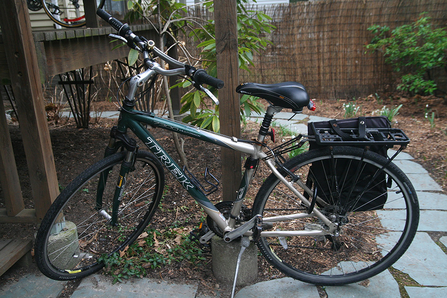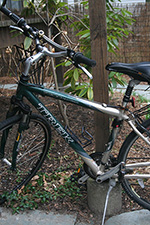 somehow i got the feeling my roommate would return home and as soon as i had that thought i saw him riding down the street on his new bike. he bought a giant (brand) boulder (model) mountain bike for $110. the first thing he said was it was too small. if he'd asked me i would've been able to tell him that a mountain bike probably only has 26" wheels (compared to the larger 700c wheels on his friend's bike). the bike didn't have an accessories but seemed solidly built. it was a better fit for someone my size than my roommate (who's 5'10"). instead of taking his new bike (i was even willing to let him borrow one of my cable locks) my roommate took his friend's bike to work. he parked his new bike in the basement, since it didn't even have a kickstand and previously he just leaned it on top of my perennial flower bulbs.