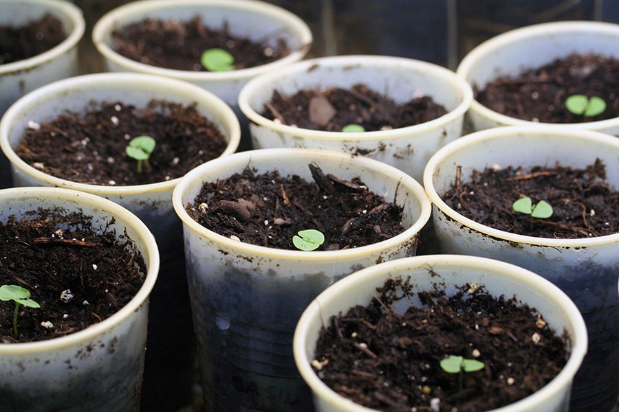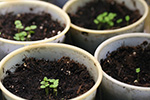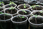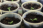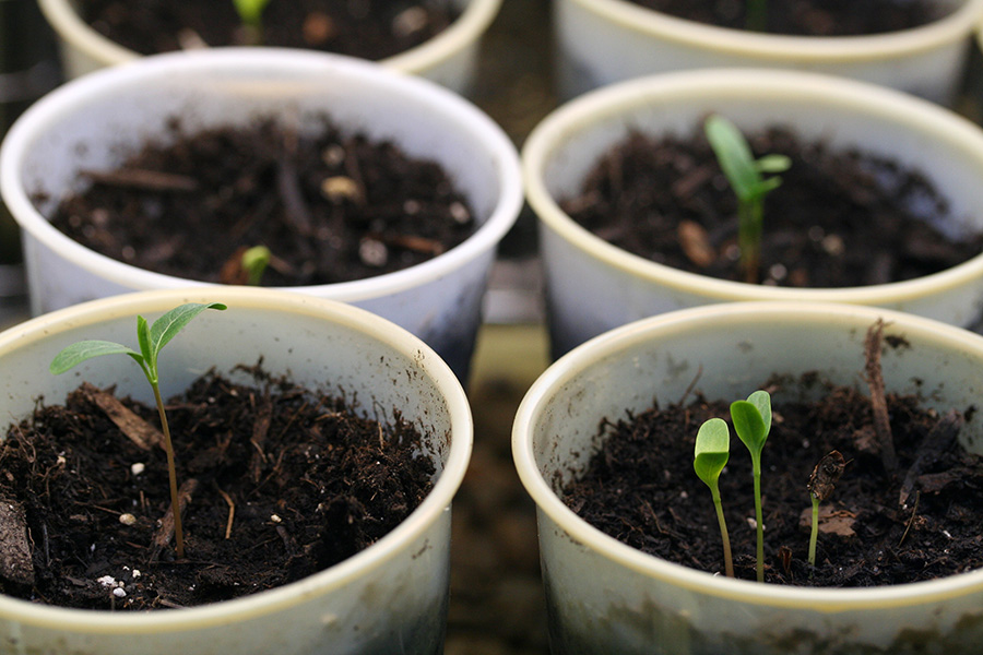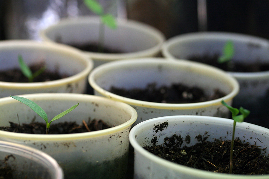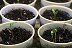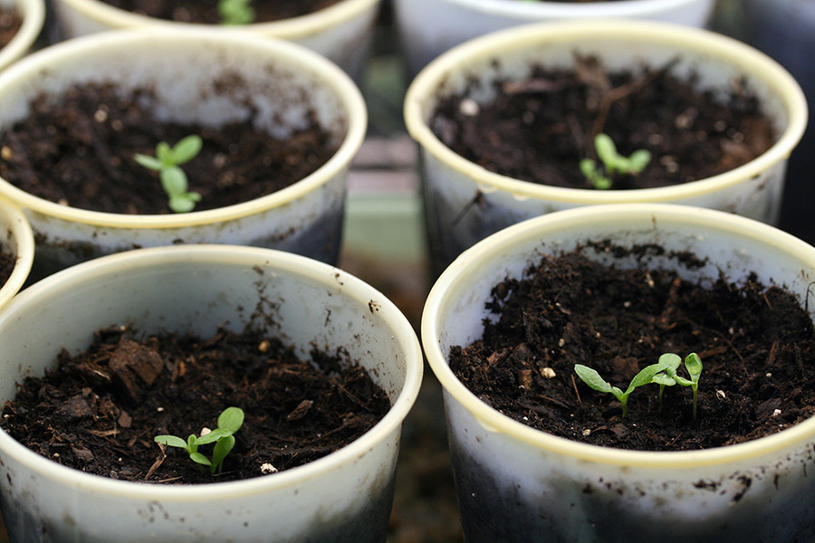 i thinned out the basil tonight, mashing up the seedlings to get that fragrant thai basil smell. i think my thai hot pepper seeds are not viable anymore because none of them germinated; instead i planted some more mixed hot pepper seeds in their containers. the delphiniums are finally sprouting. one of them came up as early as 2 days ago but now all of them are starting to poke out from the dirt. so pretty much everything has germinated, except for the few items i'm reseeding.