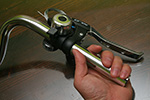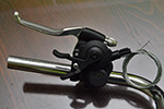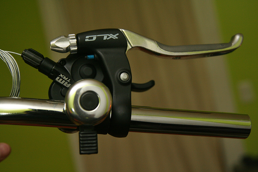 next i moved on to the SRAM TRX shifters, still in its box. when i opened the package i was surprised how big the shifters were, i was expecting something smaller (like the shimano alivio). coupled with the brake levers, i think they're even bigger than the altus shifter/brake combo i was thinking about getting originally. the TRX came with cables but not the housings. i installed everything (including a bell) onto the new handelbar to see how they'd look. the hardware looks futuristic and very eye-catching, definitely not subtle. other than some housing cables, i can install the new handlebar anytime. i may want to wait until the replacement v-brakes arrive though (unless i can reuse the current brake cables).