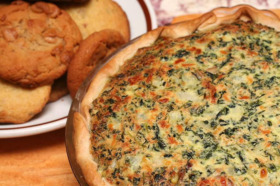 i actually made a portion of dinner tonight, my ricotta spinach pie dish with bacon. i started preparations too late and since the pie still needed to bake at least 40 minutes in the oven, my mother stepped in with a pan of frozen wontons that she quickly fried in a matter of minutes. my sister also baked some cookies since the oven was already on (turning on the rarely-used oven is quite an undertaking because my parents use it primarily as storage for pots and dishes so i first had to take everything out). my parents thought the ricotta pie was good, but dinner baking is something they rarely do, so i don't expect this to be on the usual lineup.