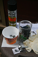 i helped my father make a plastic tarp cover for my great uncle's green house. later i helped my father solder the fixed rain barrel piping.