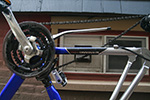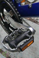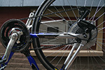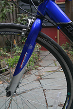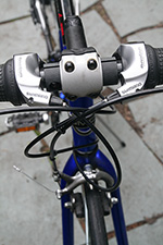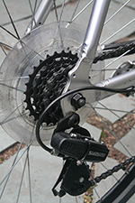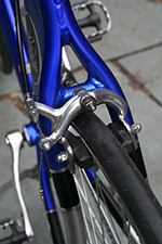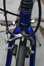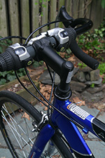 fully assembled, i had another opportunity to more closely inspect the denali. for a bike that's 4 years old, the previously owner kept it in excellent shape. the frame is nearly pristine, with almost zero scratches, and definitely no rust of any kind. the aluminum frame means it's lighter at 29 lbs. - extremely heavy by professional road bike standards - but the lightest bike i own. the frame (as well as the wheels themselves) are aerodynamically shaped - they have more of an elliptically-shaped cross-section.