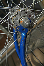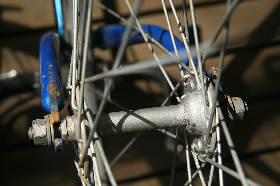 old bikes like these don't have quick releases. i used a 13mm socket wrench to remove the front wheel while the back wheel required a 15mm socket. i was glad to see eyelets on the front and rear dropouts.