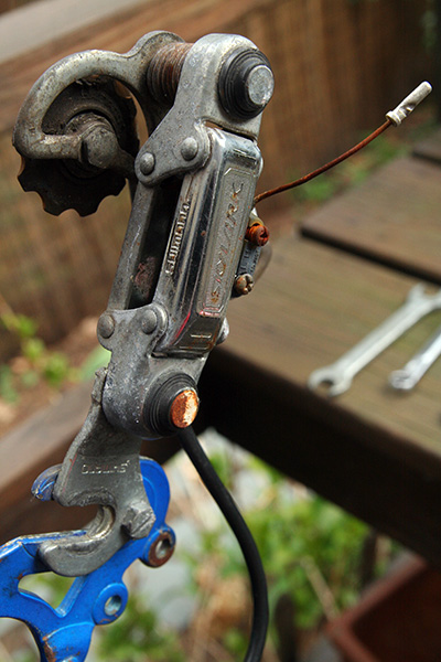 next i worked on my trek 800. the fact that it doesn't shift smoothly bothers me, especially since i spent so much time updating the shifters from grip shifters to thumb shifters.