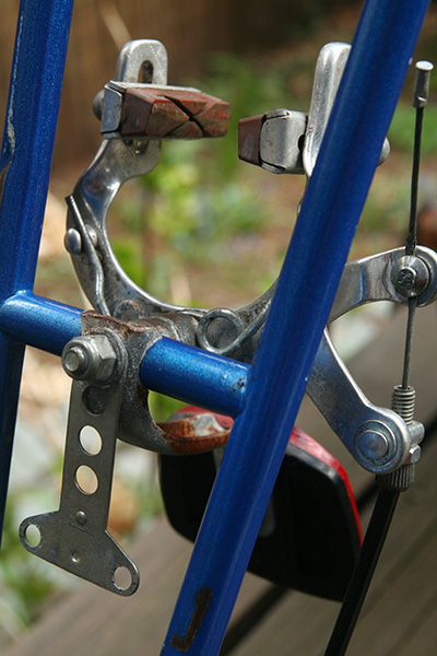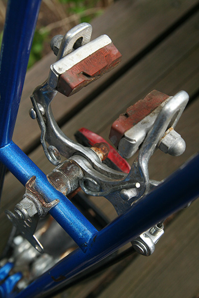 the brake pads need to be replacement since the rubber has already hardened. they're actually weinmann brev pads, black on the front wheel, red for the rear wheel. the pads don't have too much wear but not very good at stopping.