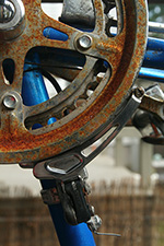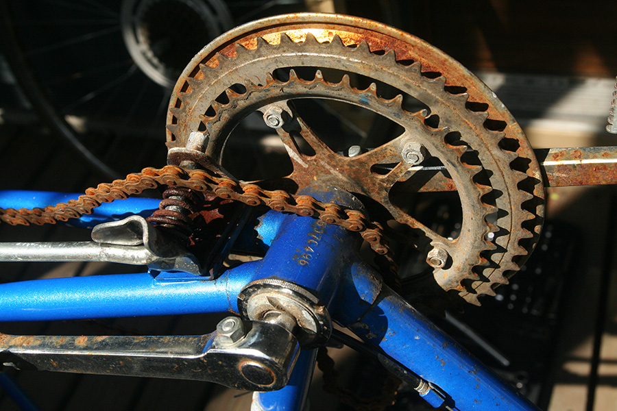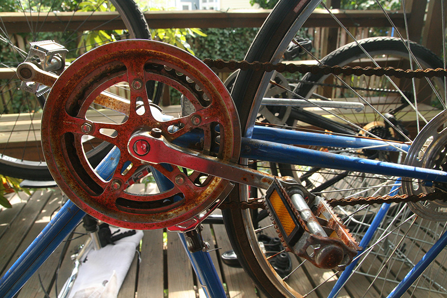 i didn't get a chance to true the wheels yet, nor remove the rust on the chainset. i was going to use a brillo pad but they can be messy and need to be rinsed with water afterwards; i'll probably resort to some WD-40 and a simple steel wool pad.