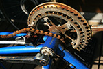 using some WD-40 and a rag, i wiped-clean the frame. it actually has a nice paint job, a glittery blue color.