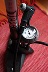 why it's called the TCPG i still don't know, and there's no information online to reveal what it stands for. i went out back and pumped the tires on my trek 800. they were only rated to 65 psi so it wasn't much of a challenge. the gauge told me the tire pressure was previously at 40 psi. i then went down to the basement to pump the road bikes, the fuji and the denali. both were only at 40 psi pressure, which i guess is how much i can do with only a hand pump. using a floor pump was much easier; it took about 6 pumps to get from 40 psi to 100 psi, which is what set the road tires to. there was so much pressure that when i went to go release the pump head, it almost flew off from the valve. i like the simple pump head design, which made easy work of my hybrid-tubed denali with its one presta and one schrader valve.
