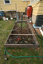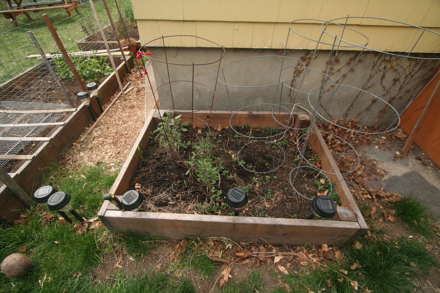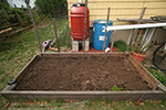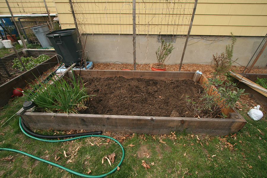 my new wednesday routine is i go to belmont for a few hours in the afternoon to do some gardening. my father and sister were also home. i started with some dandelion weeding before preparing the raised beds: remove the salt marsh grass mulch then mix in 2 bags of manure/humus. over the weekend we'll add more nutrients from our compost bin (this year's project is to build a tumbling composter). i didn't have time to start some seeds indoors so i took a leftover bag of potting soil and some containers with me when i returned home.
