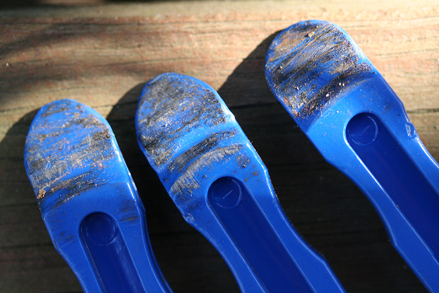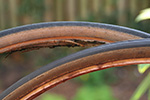 back at home, i finally got around to disassembling the jetter bike wheels. the front tire was a challenge to remove, and i ended up stripping some of the rubber edges. the tire itself was also old so it didn't hold up too well. the rear tire was far easier to remove; once i managed to pry off a bit of the tire with the lever, i was able to quickly run the lever along the remaining circumference. now i have the tedious task of truing the rims!