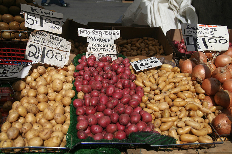 the weather was pleasant with temperature in the 60's, so i only wore a light jacket. it's still too early for anything interesting to be in season. i bought: cucumbers, ginger, lettuce, apples, beets, lemons, scallions, cilantro, and pears. i thought the pears were forelles but the seller gave me a bag of bartletts.