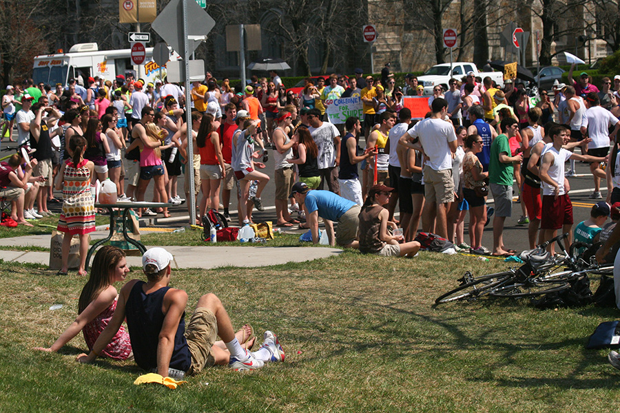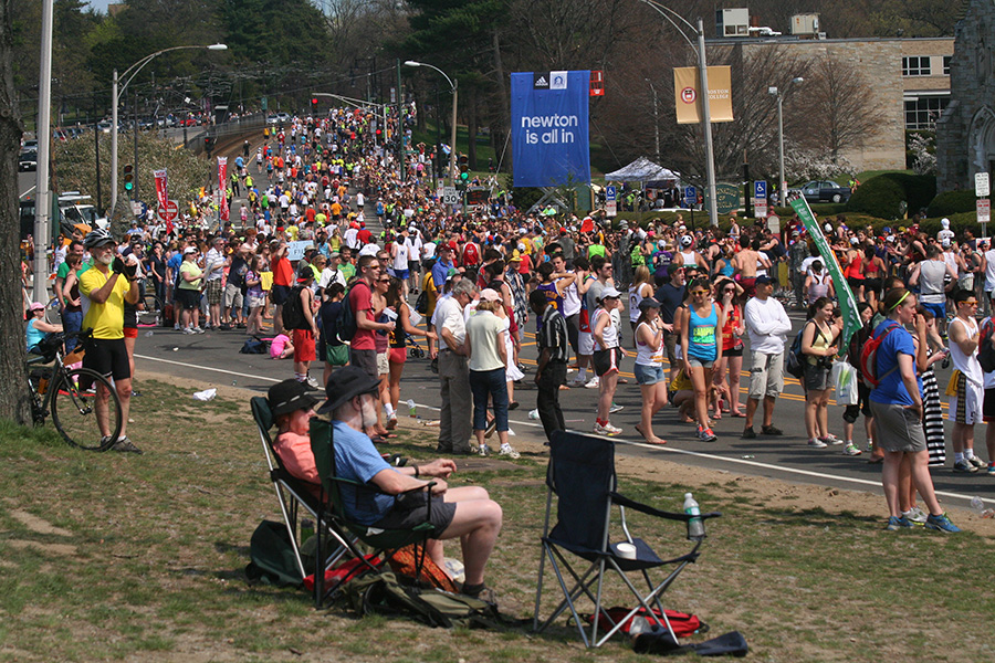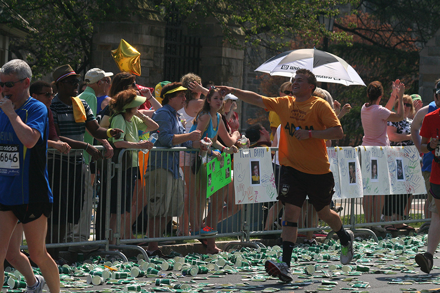 * watching the marathon from boston college (should've worn ear plugs)