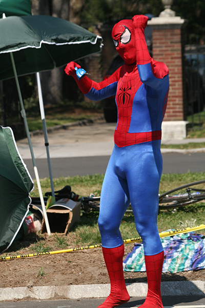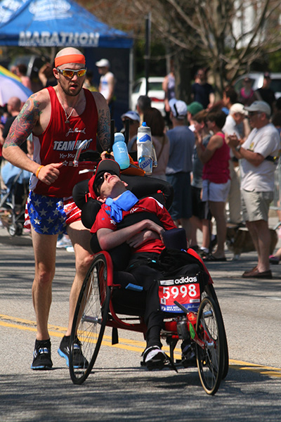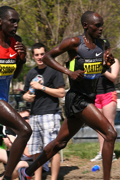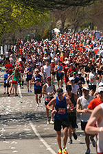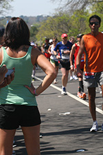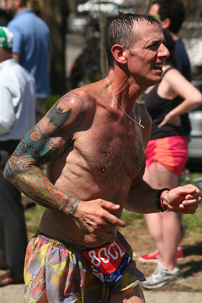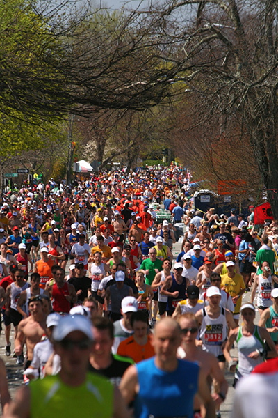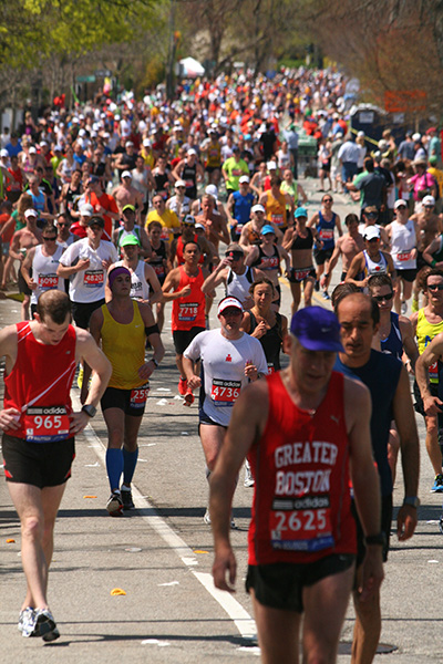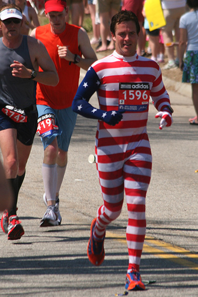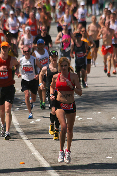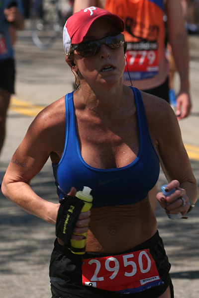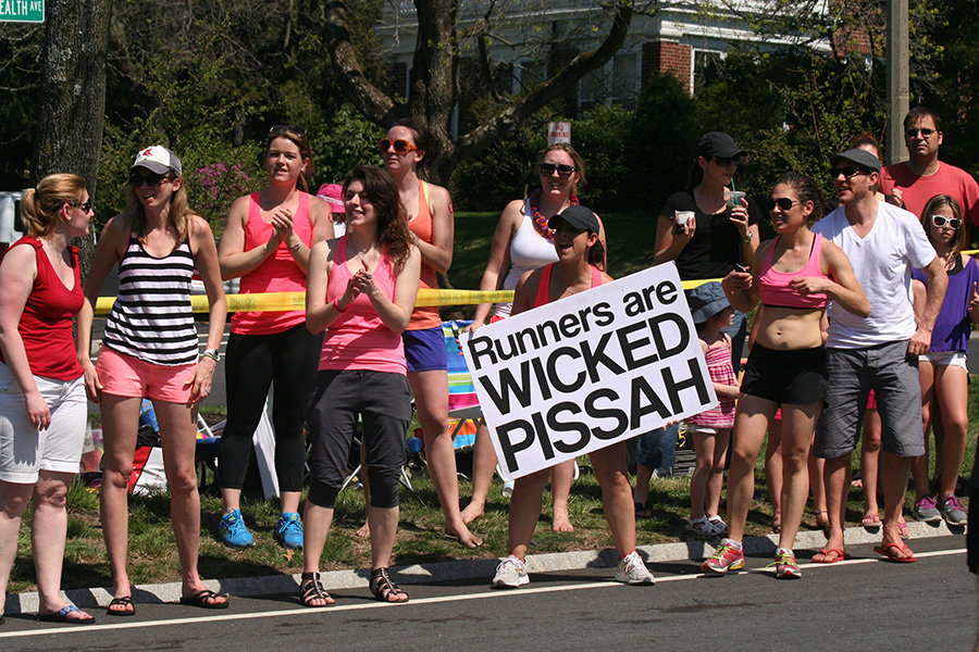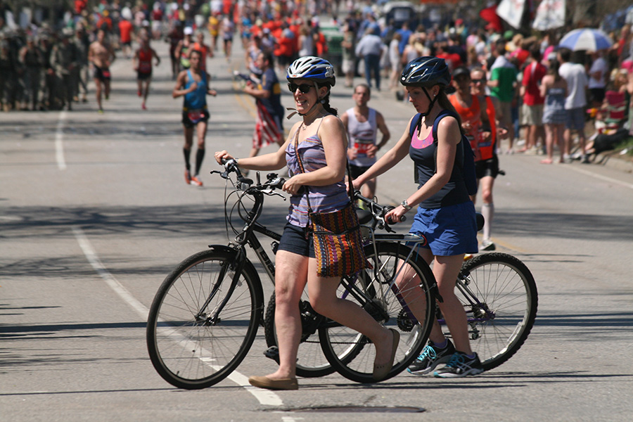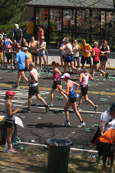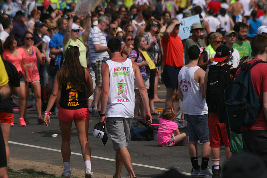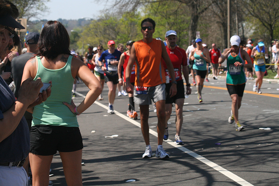 * riding my bike in 80's degree weather to heart break hill in newton to watch the boston marathon using printed google map directions (nasal spray and sun block and 2 bottles of ice cold water)