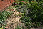 this early in the season i can still see the ground so it's easier to imagine a prospective layout. it was just too hot to work though, and i scratched up my arm from a rampant blackberry bush so i definitely wasn't in the mood for gardening. i pruned off the dead raspberry branches, took some measurements (my plot is 12'x14', much bigger than i thought), then left with the promise that the next time i return i'll do a massive cleanup.