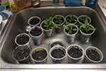 the biggest project was dividing my flower seedlings. milkweeds, snapdragons, shasta daisies, delphiniums - i didn't have the heart to thin any of them so i ended up with containers crowded with plants. at first i tried to be all surgical about it, cutting around the seedlings with a small knife and then trying to spoon it out. that just made a big mess so in the end i just decided to grab firmly and pull out the seedlings. those that came out minus roots were beyond savings; those that did have some roots i repotted in new containers. hours later when i checked some of the new transplanted seedlings were already wilting, which means they may not survive. at least i tried. good thing is i have more daisies and delphiniums growing at my parents' place (although it'll take 21 days for germination).