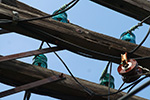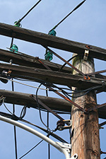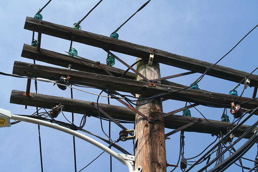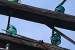 yesterday i learned about eruvin (singular: eruv), mysterious guide wires that encircle towns to symbolically mark the border of an enclosed space for use in carrying during the weekly jewish sabbath (for those who observe). i discovered there's an eruv that encompasses cambridge-somerville, and the demarcation line actually lies along the cambridge-belmont, so i must've passed by it every time i go to belmont. on my way home i tried looking for it but couldn't see anything other than utility wires. could they also function as eruv lines? at the intersection of fountain terrace and holworthy street i did find one utility pole bejeweled by old-school glass insulators.