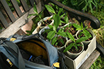i brought along a box of 7 milkweed plants which i transplanted. i figured since these were native flowers they'd be able to tolerate the cold weather at nights after just a single day of hardening yesterday on my back porch. i also relocated a parsley plant. almost all of the raspberries i relocated were dead from apparent frost damage because the leaves were all grey and shriveled. i'm not too concerned, golden raspberries are pretty prolific.