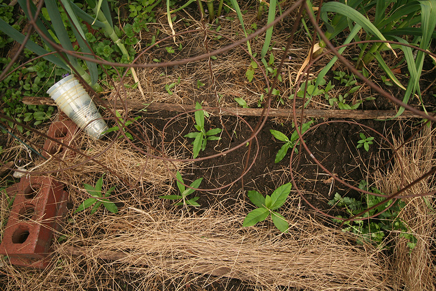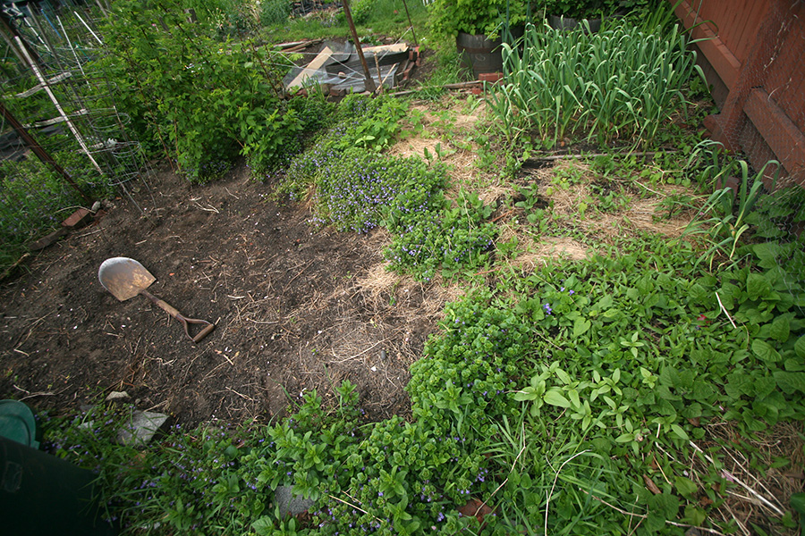 i decided to go down to the community garden to finish cleaning up the rest of my plot. there was a complaint this week about overloading the refuse bin and filling it up with dirt, and i was responsible for both grievances. it wasn't necessarily that i was throwing away soil, but the ground ivy i was tossing out had a lot of embedded dirt that i couldn't completely get off no matter how much i shook them.